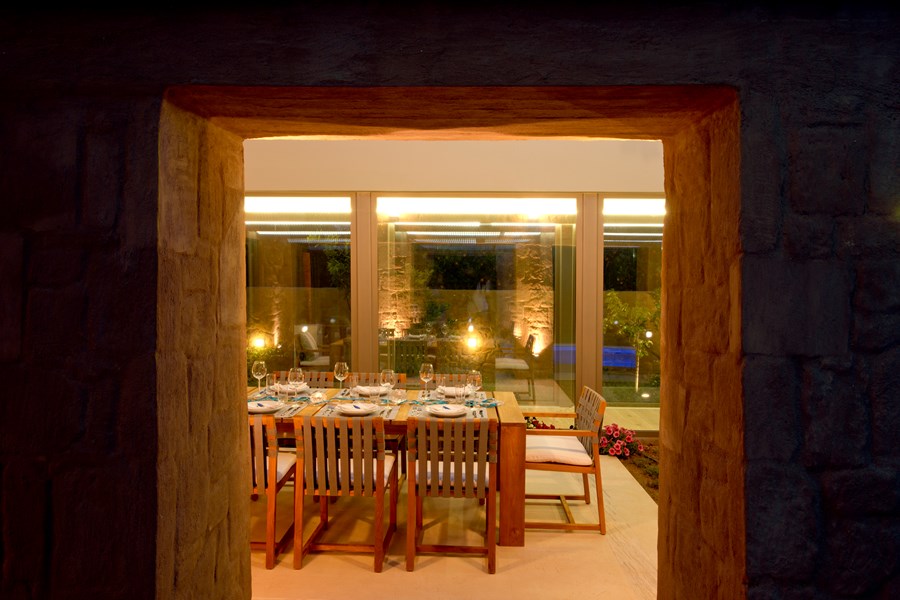 “… auf der Suche nach den Wurzeln der traditionellen kretischen Architektur und inspiriert durch die blühende Landschaft wollten wir die Conte Marino Villas in einen transparenten ‚Dialog‘ mit der Umgebung treten lassen.”