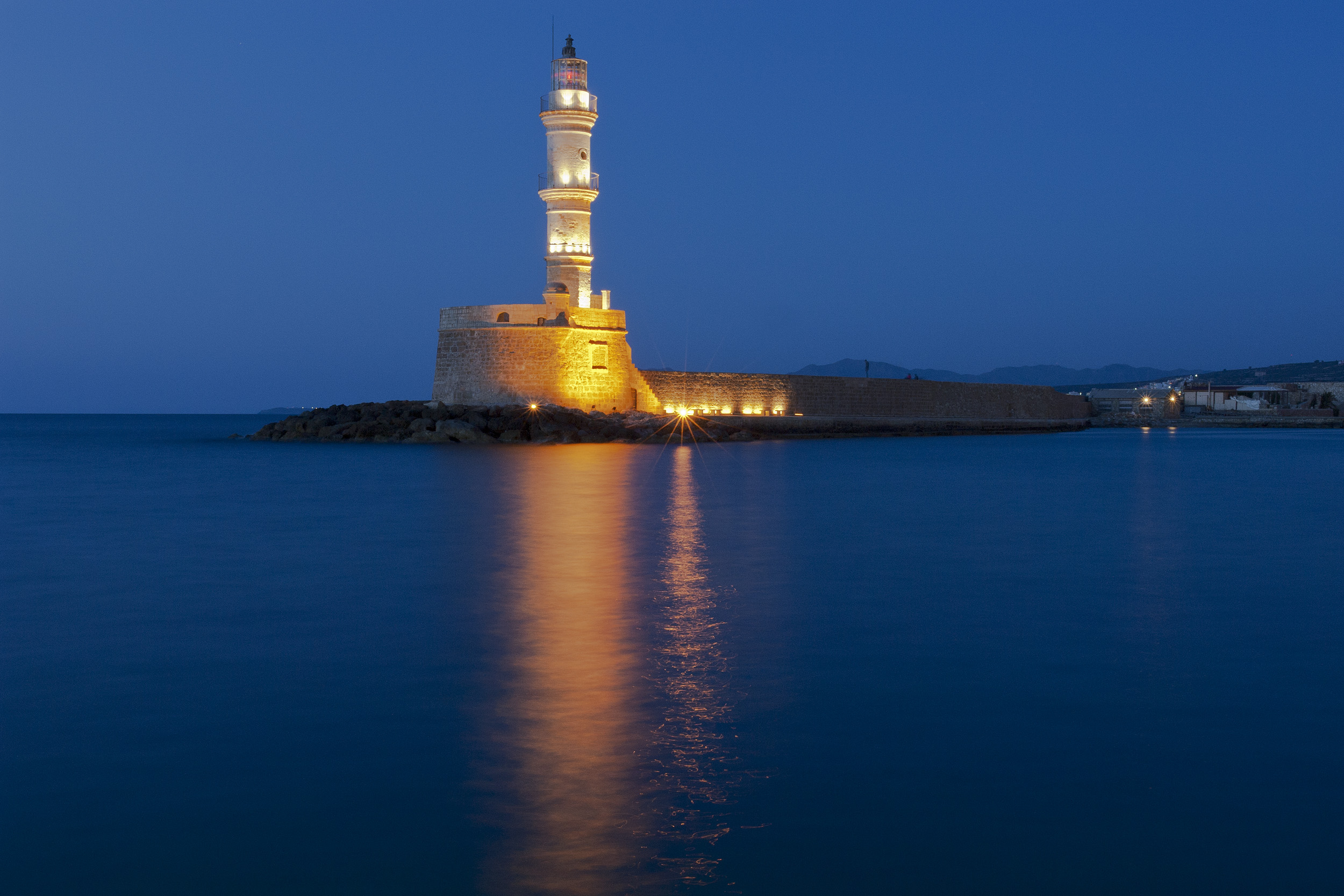 Der Alte Venezianische Hafen und der Leuchtturm sind wahrscheinlich die bekannteste Wahrzeichen von Chania und das am häufigsten fotografierte Bauwerk auf Kreta . Zu einem Ausflug nach Chania gehört es einfach mit dazu, dass man einmal die Promenade entlang, vorbei an den vielen Restaurants, Läden, Ständen und Cafés flaniert ist. Der Hafen wurde von den Venezianern im Jahr 1320 für den damals regen Handel Venedigs mit der Insel erbaut. Heute ist es das künstlerische Zentrum der Insel mit sehr kosmopolitischem Touch. Den Leuchtturm als markantesten Teil des Hafens, sollte man auch bei Nacht gesehen haben, wenn das Leuchtfeuer das Wasser magisch zum Glimmen bringt.